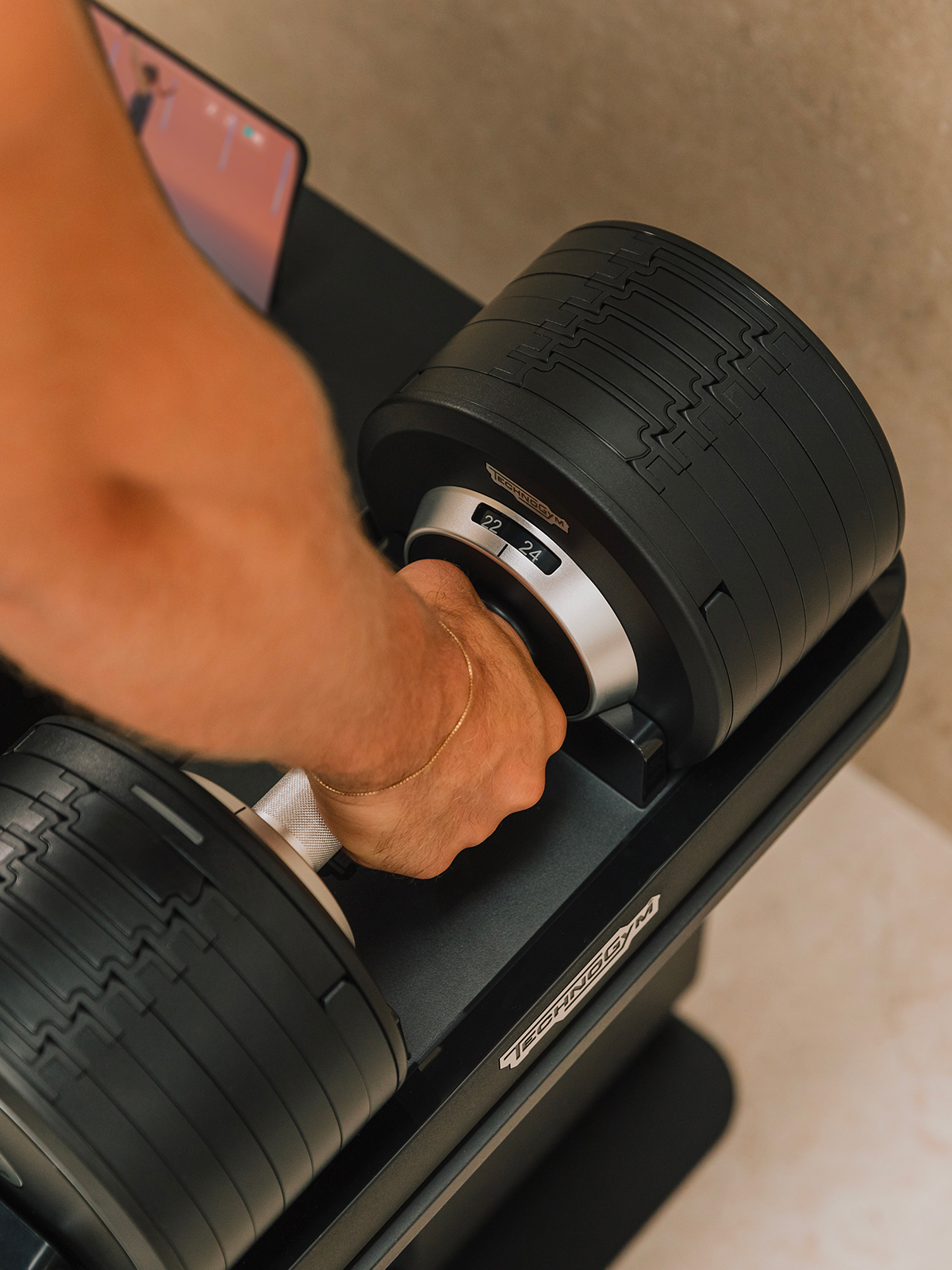 Умные гантели 12 в 1 с индивидуальной нагрузкой, адаптированной под вашу производительность и показатели.