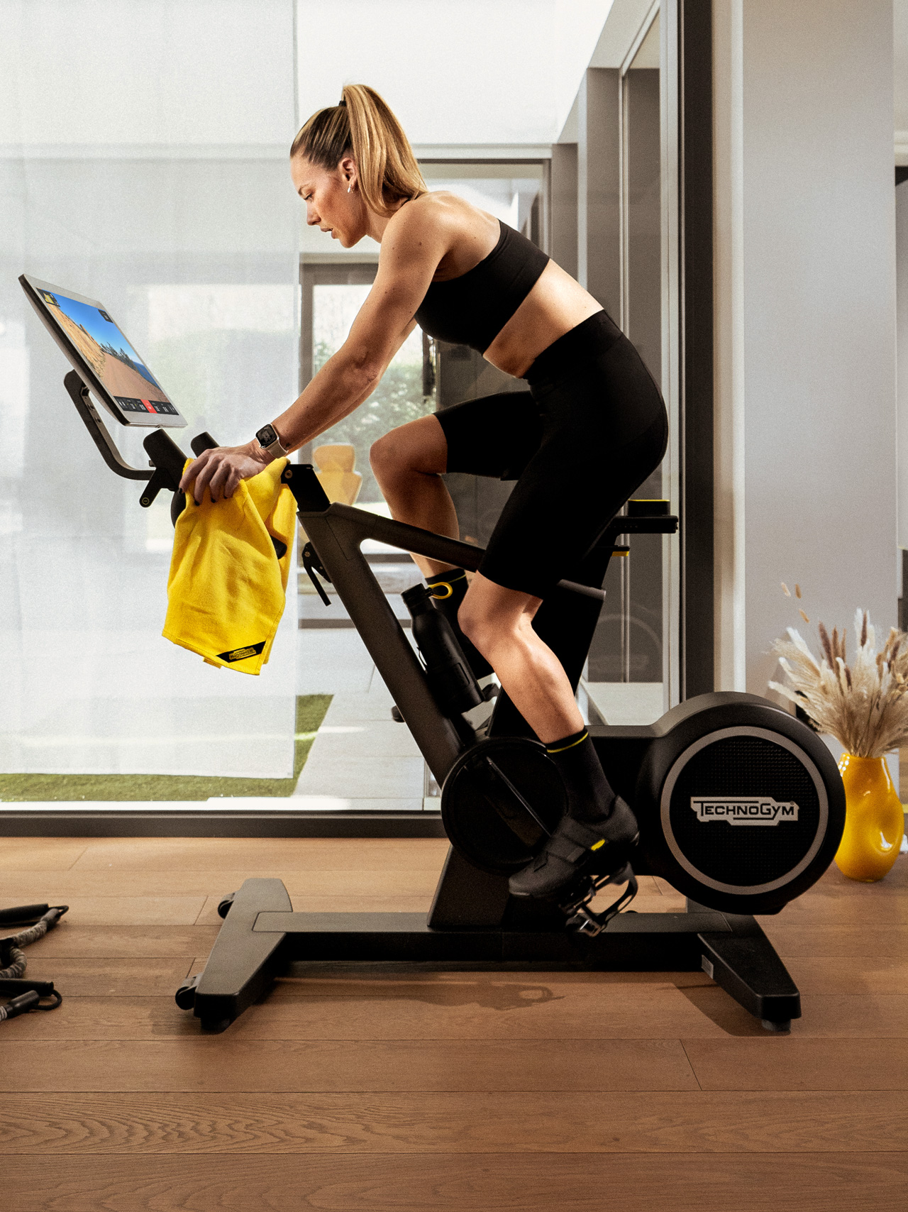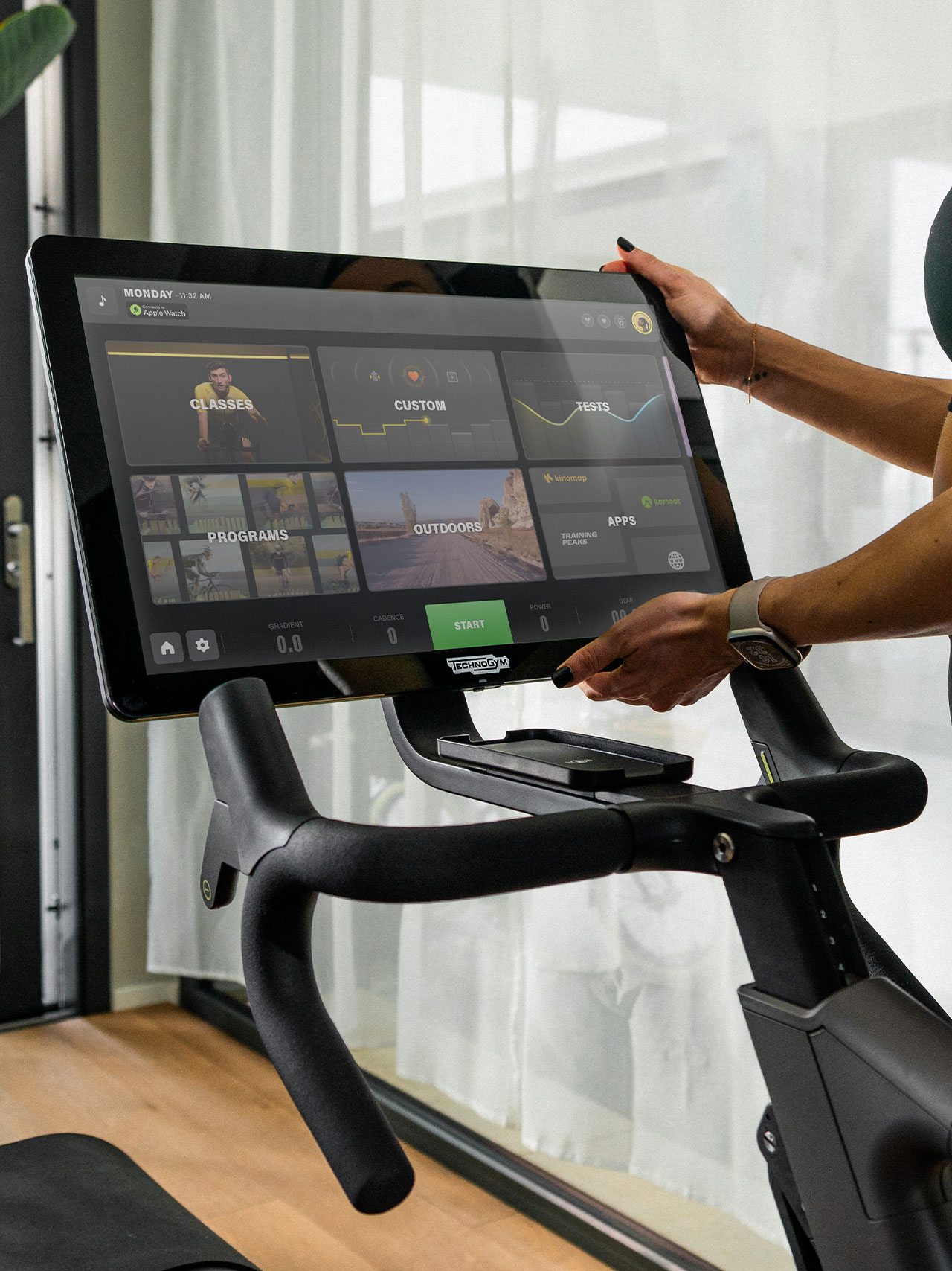 No need to connect several devices: the smart bike integrates all your metrics, favorite apps, and training sessions right on the screen. And you’re ready to ride.